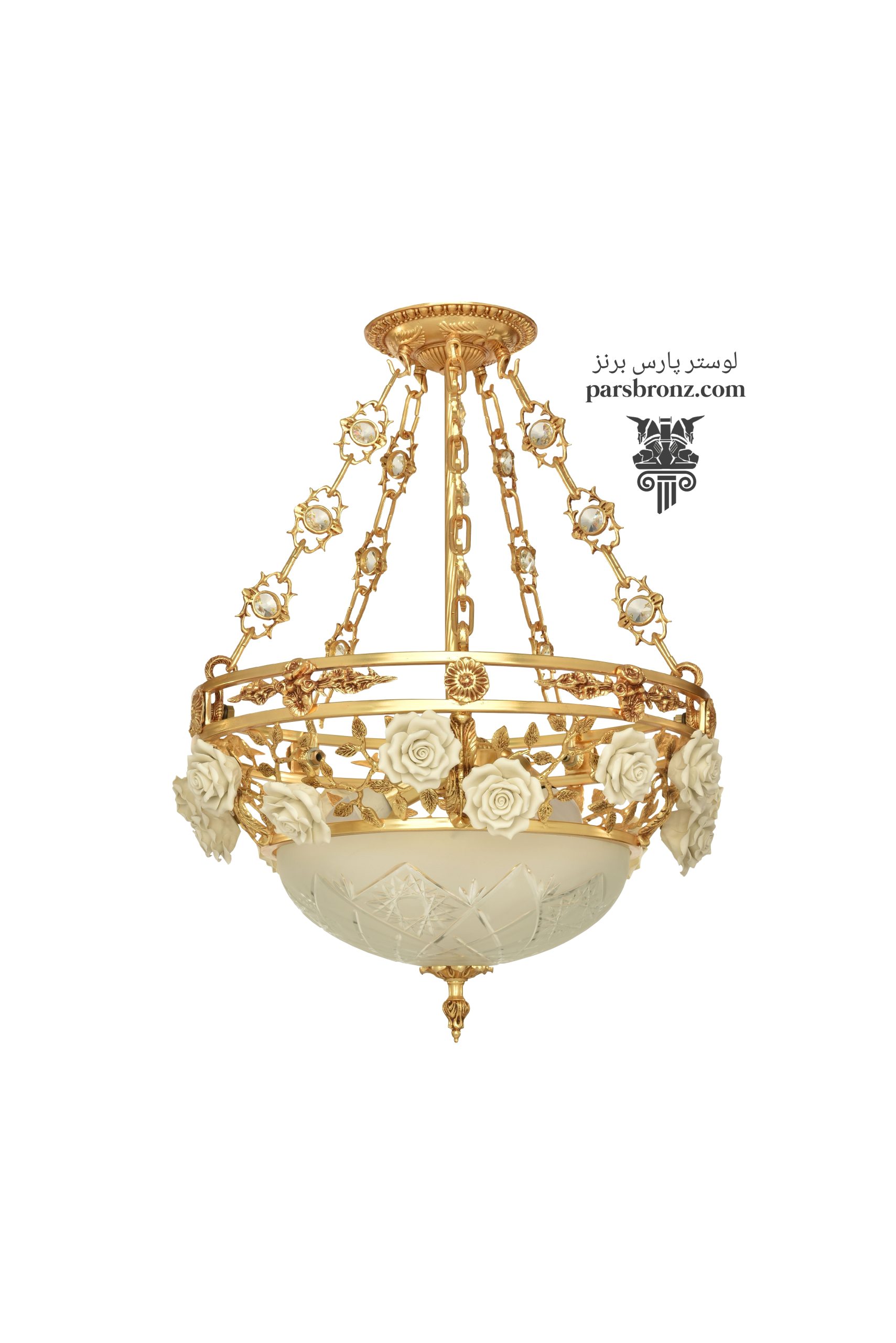 این لوستر زیبای سقفی دست ساز بوده و حاصل تلاش هنر و تجربه هنرمندان و صنعتگران خبره ماست و همچون دیگر محصولات شرکت پارس برنز میتوانید بر اساس سلیقه و نیاز خود آن را سفارسی سازی نموده و گل های سرامیکی را با توجه به دکوراسیون منزل خود به رنگ دلخواه سفارش داده و آبکاری لوستر را نیز تغییر دهید.