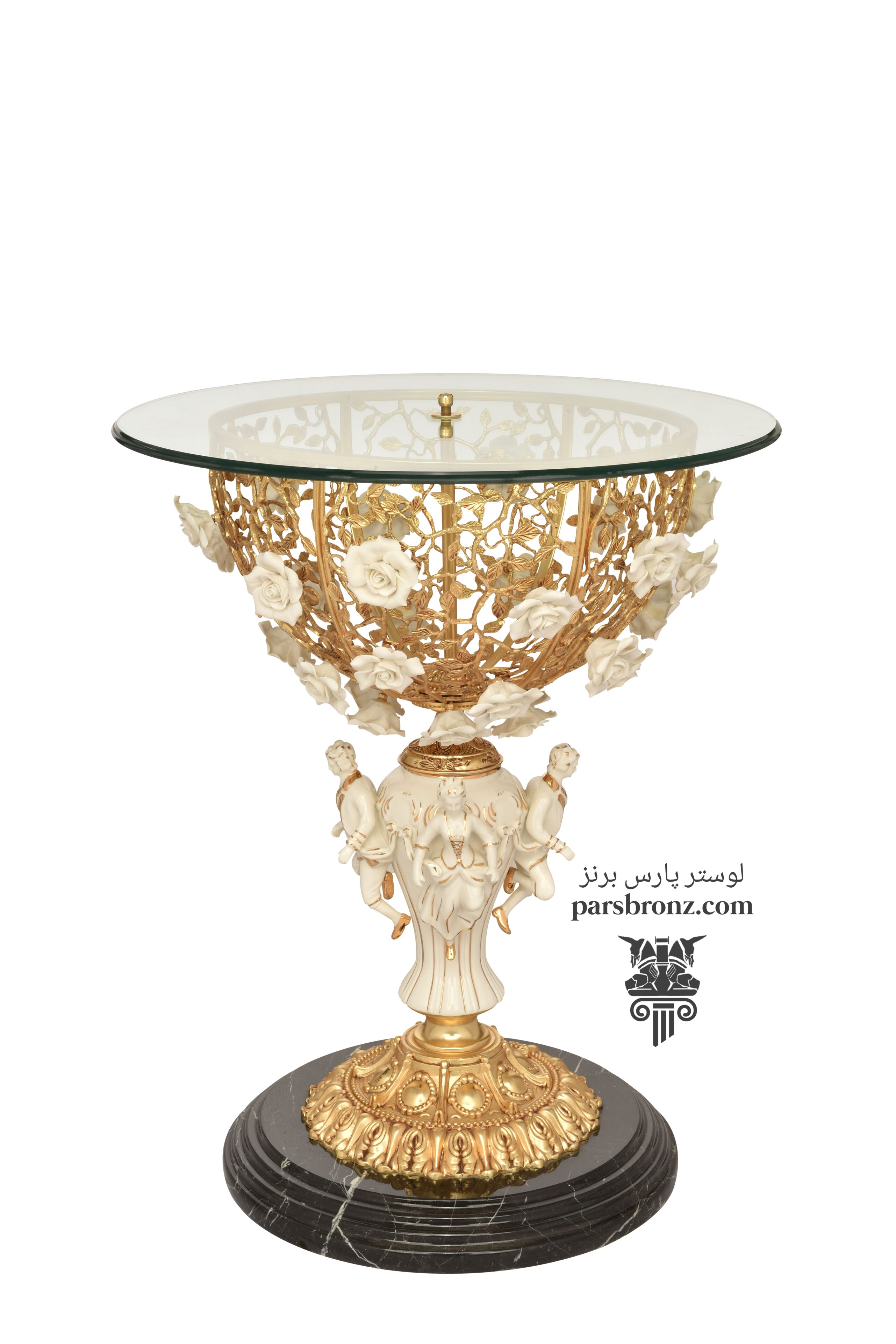 میز طرح سبد گل و چهار مجسمهمیز برنجی جدید مدرن کلاسیک برنز شیک سرامیکی قیمت مناسب خرید