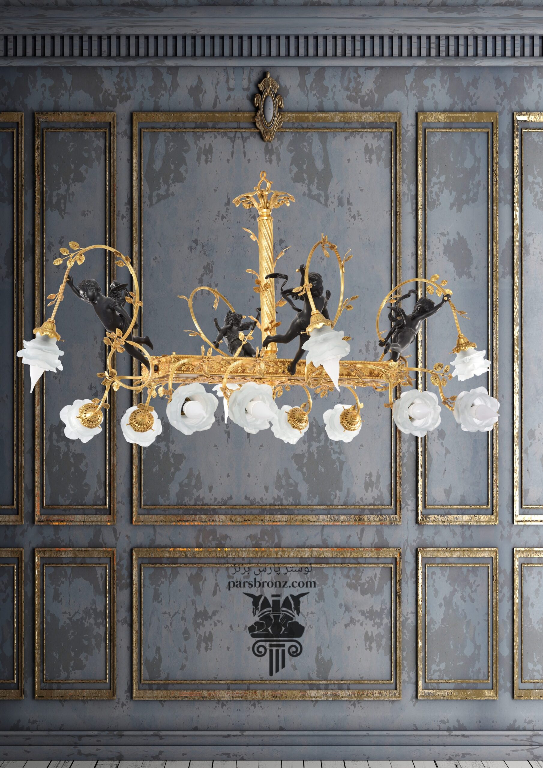 این لاینر خاص و لوکس با مجسمه های برنزی طرح کودک فرشته های بالدار بسیار خوش ساخت و زیبا که شاخه های لوستر را چون مشعلی در دست گرفته اند تزیین شده است. مجسمه های برنزی در ابتدا به صورت دو نیمه مجزا قالب ریزی شده و سپس هر یک از نیمه ها به صورت دقیق پرداخت و پولیش میشود. در مرحله بعد مجسمه با جوشکاری بسیار ظریف به وسیله نقره جوشکاری شده و دو نیمه بهم متصل شده و یک فرشته شکل میگیرد.