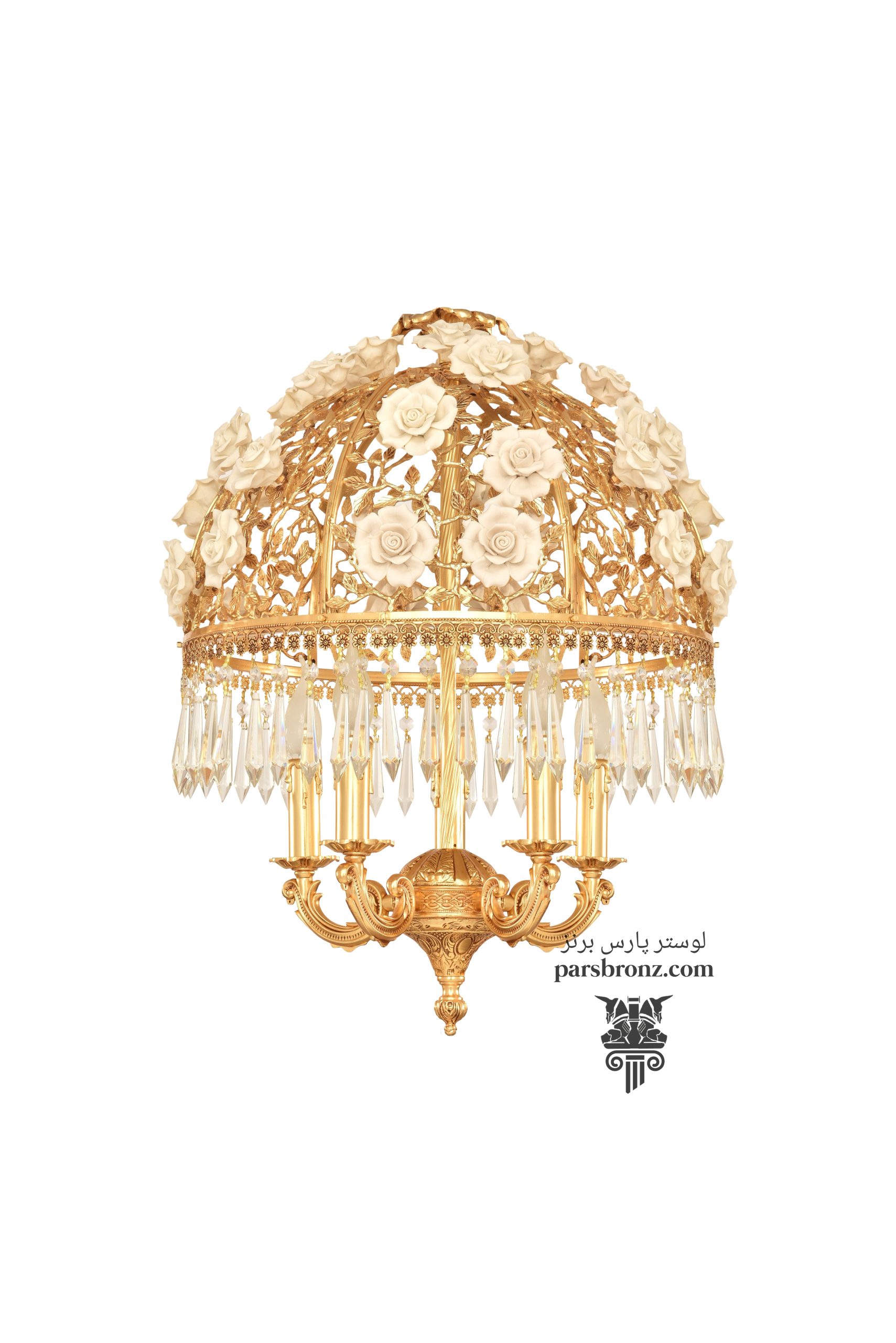 لوستر فانتزی برنز برای آشپزخانه پذیرایی کوچک اتاق خواب مدل سبد گل سفید کد CH-2037