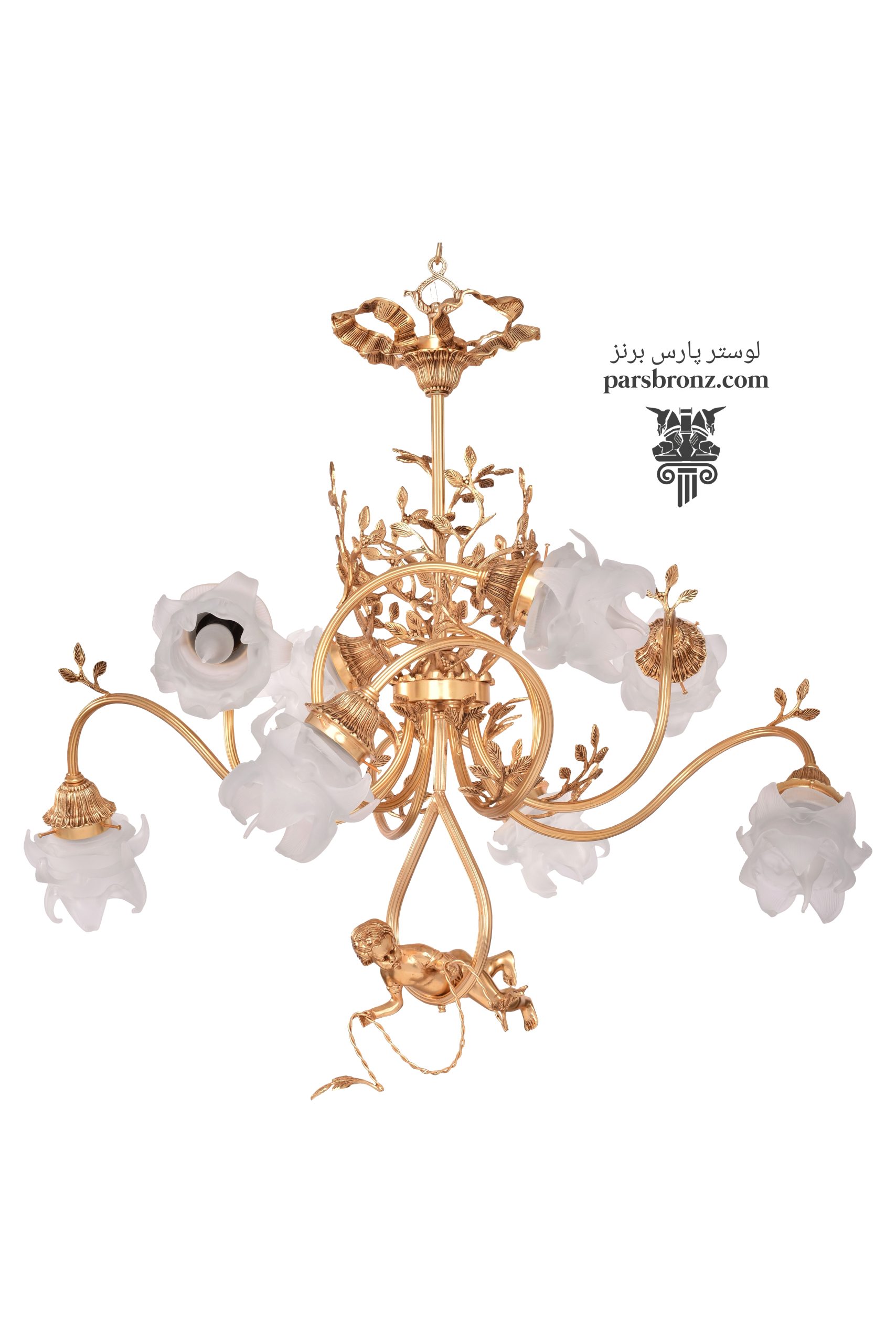 لوستر جدید کلاسیک مدرن برای آشپزخانه، اتاق خواب و پذیرایی با بدنه برنز برای سقف کوتاه کد CH-3037 مدل پسربچه درختی، محصول شرکت پارس برنز تهران است که با قیمت مناسب ویژه کارخانه برای خرید آنلاین و حضوری (در تهران) در دسترس شما عزیزان میباشد. این لوستر پذیرایی فانتزی دارای هشت شاخه برنز (برنجی) تک شعله است که همانند شاخ و برگ های درهم تنیده یک درخت، حول ستون مرکزی لوستر در جهات مختلف درهم پیچیده اند. همین نحوه قرار گیری شاخه ها موجب امکان پخش نور لامپ ها در همه جهات و روشن کردن یکدست فضا (به جای پراکنش نقطه ای و تجمع نور در یک جهت بالا یا پایین) گردیده است. طراحی این لوستر کلاسیک مدرن فانتزی آشپزخانه و اتاق خواب، تداعی کننده پسربچه ای جنگلی مشغول بازی و معلق از شاخه یک درخت است. مجسمه برنز تندیس پسربچه پس از قالب ریزی و جوش کاری ظریف نقره و چندین مرحله پرداخت و پولیش با دست وارد مرحله حکاکی دستی شده و خطوط و نقوش تندیس برجسته سازی میشود.
